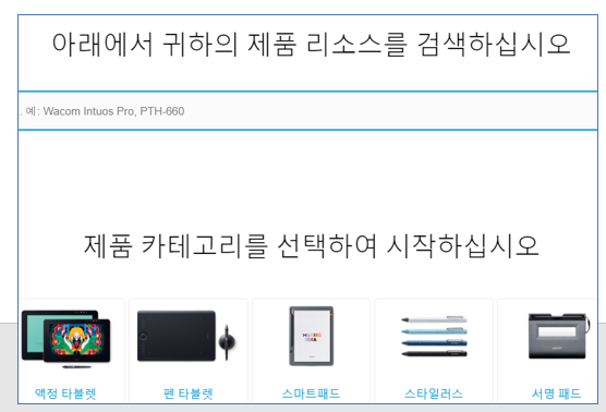 와콤 타블렛 드라이버 사이트에 들어가면 제품 모델명이나 카테고리를 통해서 본인이 가지고 있는 제품을 선택하면 됩니다. 저는 일체형 윈도우 펜 타블렛과 컴퓨터용 액정 타블렛 둘 다 가지고 있는데요. 하나는 윈도우에서 또 하나는 맥북에서 사용하고 있습니다. 여러분도 본인 컴퓨터에 맞는 드라이버를 다운로드 하세요.
